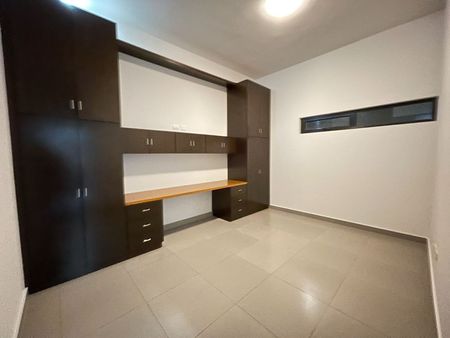 - Dos recámaras, recámara principal con walk-in closet y baño privado, recámara secundaria con closet de pared y baño compartido con el baño de visitas.